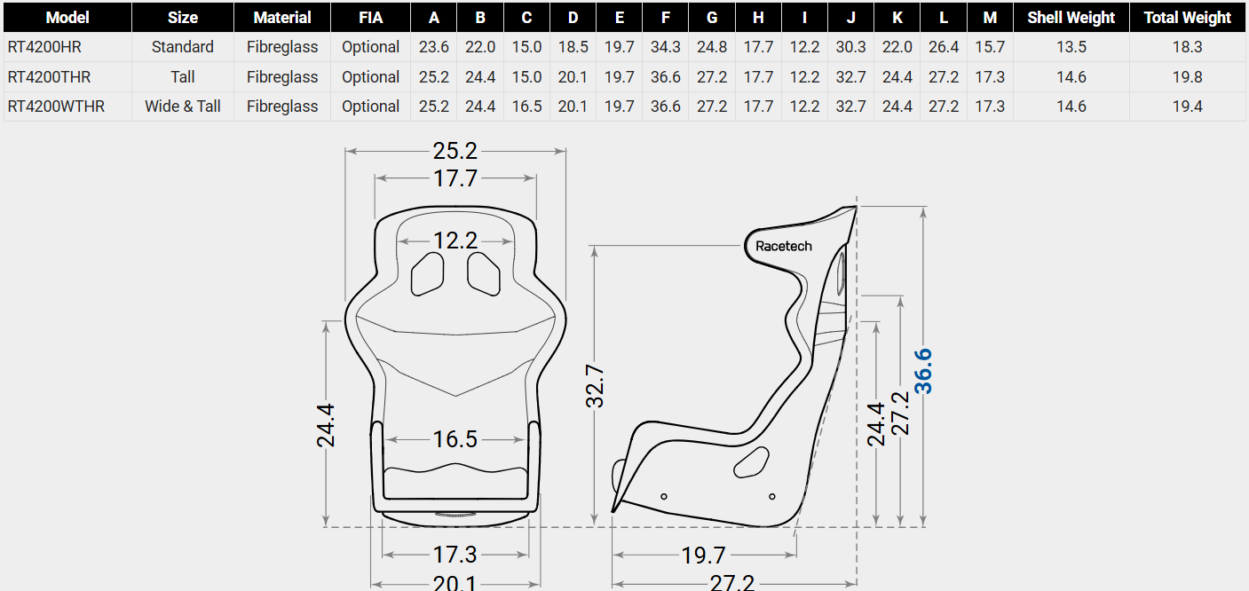 Racetech 4200HR Racing SeatRacetech 4200HR Racing SeatRacetech 4200HR Racing Seat